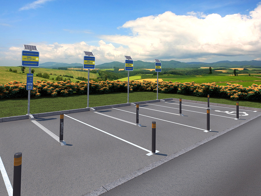 Exemplo de solução para estacionamento pago em cidade, paralelo à via pública.
